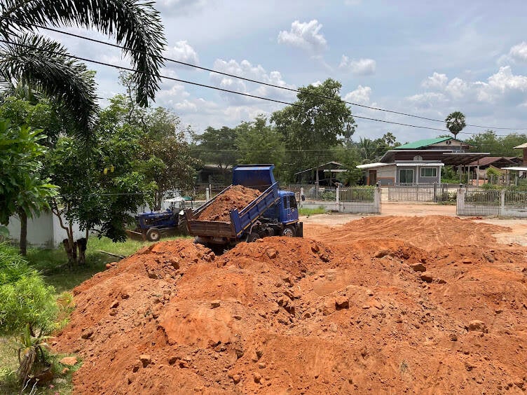 Um das neue Haus vor allfälligen Überschwemmungen zu beschützen, schütten wir den Standort auf.