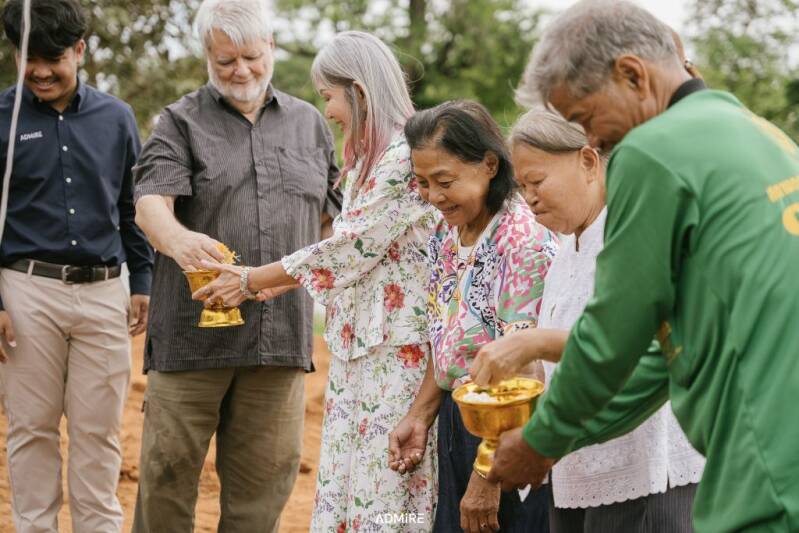 Die Aufrichte des Haupt-Pfahls wird mit einer kleinen Feier begleitet. Die Feier gilt als Zeichen des Baubeginns.